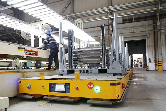 鋼板完成所有沖壓工序之后,都會經(jīng)過人工檢查,如果有問題會交到返修部門。配合檢測的還有平行光檢測室,檢測頻率是50件/次,檢測合格的產(chǎn)品會由AGV小車運(yùn)往倉庫。這種小車在其他車間同樣能夠見到,是個智能的自動運(yùn)輸設(shè)備。